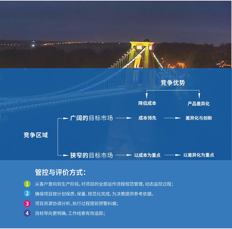 產品戰略包含:產品策劃、研發、項目管理、費用管理、資源匹配與預警,產品生命周期管理、結果反饋與評價。